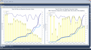 We will select a couple of metrics that indicates project schedule performance. In the case below we are looking at task hits and misses and Baseline Execution Index, a popular index that determines efficiency in meeting baseline schedule planning.